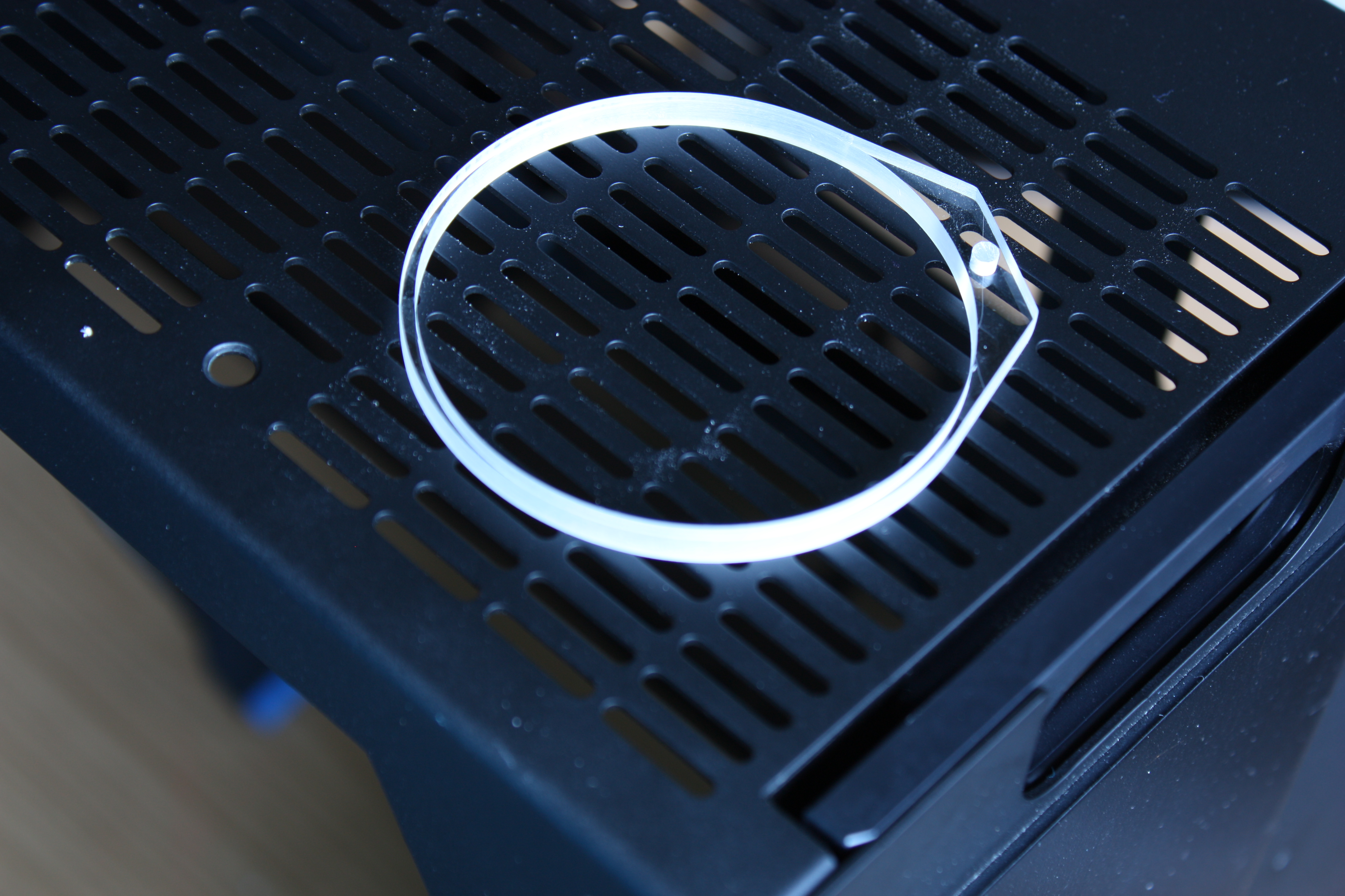 As shown if Figure 3 you can see that the PSU sits along the bottom of the rear cavity taking up all the room that would be ideal for a water pump. This is most likely why the pump was moved to the front of the case for the CES build. However I noticed that the RGB controller for the lights (which I wouldn’t be using, more on this later) was perfectly placed to allow for mounting of a bracket to have the water pump sit just above the PSU. I would also be removing the HDD cage in order to free up space as I was going to be using a 1TB PCI-e SSD for this machine anyway. This ended up being a pretty easy part to make on my small CNC machine, just two pieces of cut acrylic welded together. Below in the finished part.