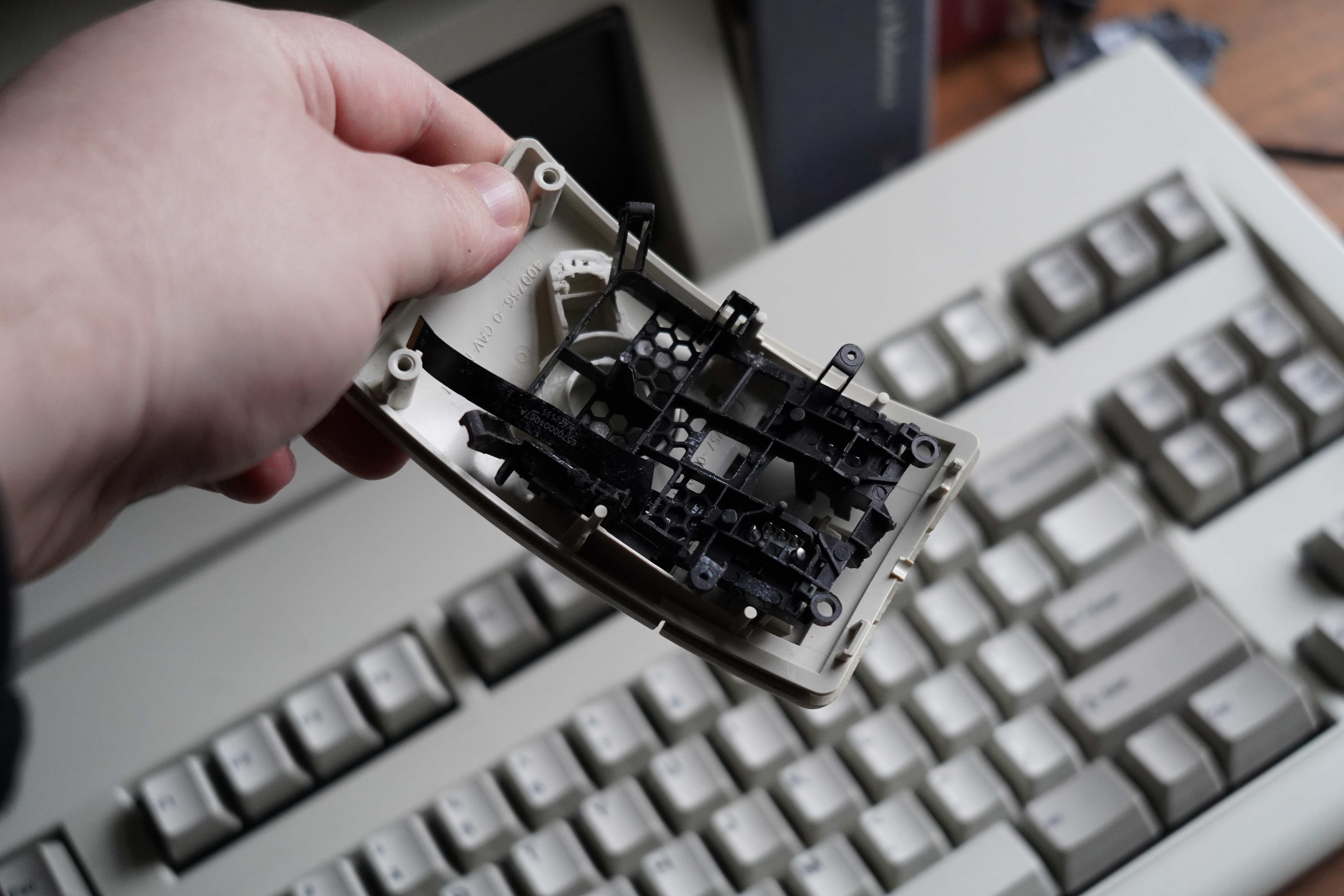 Given the poor performance of older PS/2 roller ball mice and only being able to get modern mice in styles that clash with the rest of my equipment I decided to retrofit newer mouse internals into the IBM mouse. In order to do this I needed to find a mouse where the sensor roughly lined up with the position of the ball mouse opening, as I didn’t want to make any external modifications to the IBM mouse. In order to do this I needed to be able to see the mice in person before buying, this limited my options for mouse brands as the only place I could think of that still exists to go and handle a large number of mice is the Razor store here in London.